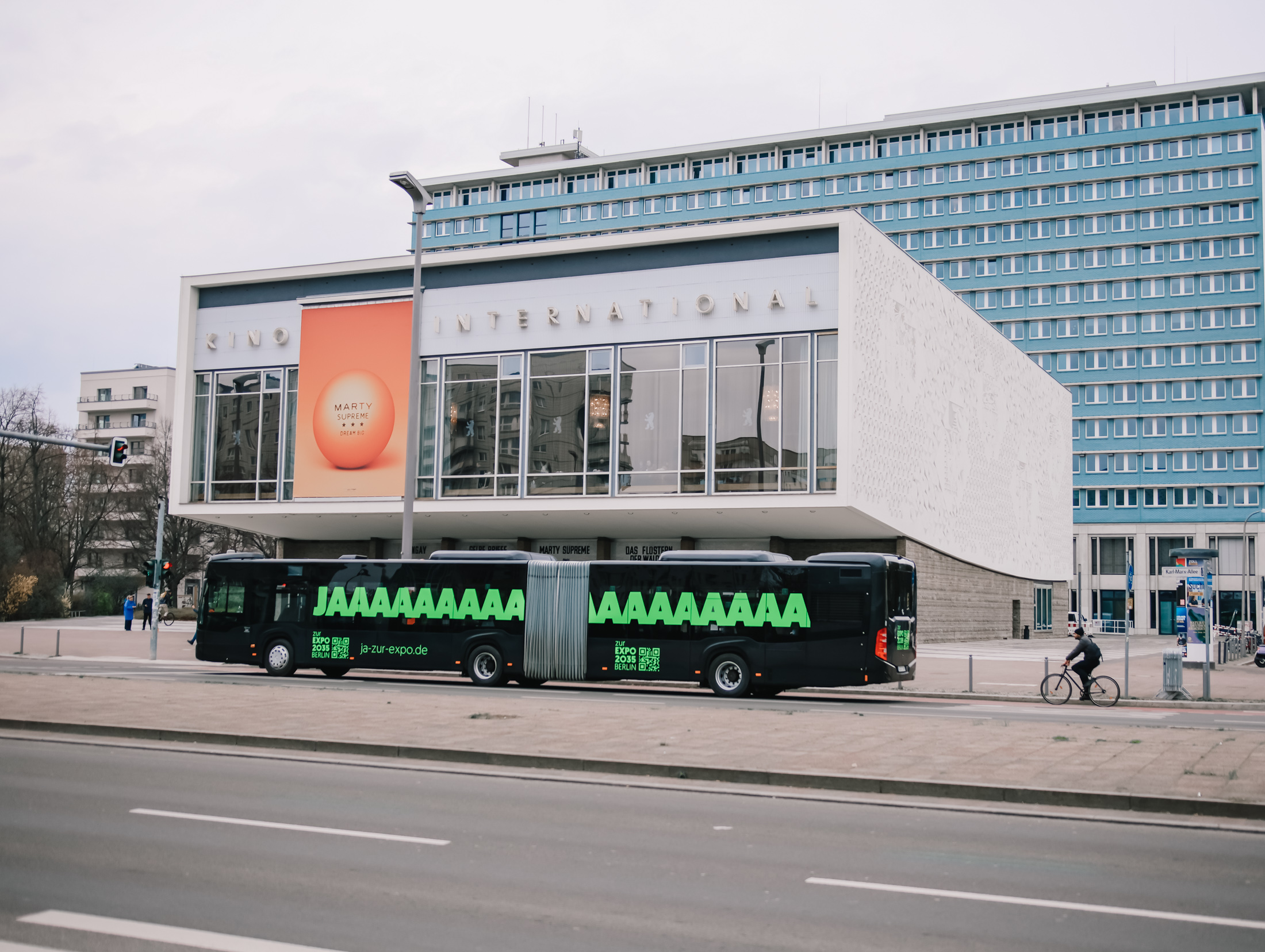 Am 25. März haben wir gemeinsam mit über 350 Gästen aus Wirtschaft, Wissenschaft, Kunst und Kultur, Medien, Sport, Politik und Zivilgesellschaft im Kino International unsere Kampagne JA zur EXPO 2035 Berlin gestartet. In den kommenden Wochen wird sie im gesamten Stadtbild sichtbar sein.