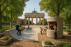 Umsetzung einer 3D-gedruckten Parkanlage im öffentlichen Raum für die EXPO 2035 in Berlin. Der Park soll auf einer Berliner Brachfläche entstehen, zur Renaturierung beitragen und additive Hochtechnologien und nachhaltige Materialinnovationen